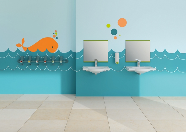 Wie schön wäre da eine kinderfreundliche, fantasievolle Atmosphäre im Bad - und das entlastet nicht nur die Eltern, da ständige Präsenz "vor Ort" nicht mehr notwendig ist